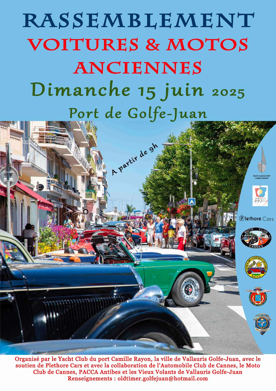 Organisé par le Yacht Club du port Camille Rayon, la ville de Vallauris Golfe Juan, avec le soutien de Pléthore Cars et la collaboration de l’Automobile Club de Cannes, le Moto Club de Cannes, PACCA Antibes et les Voeux Volants de Vallauris Golfe Juan Renseignements : oldtimer.golfejuan@hotmail.com